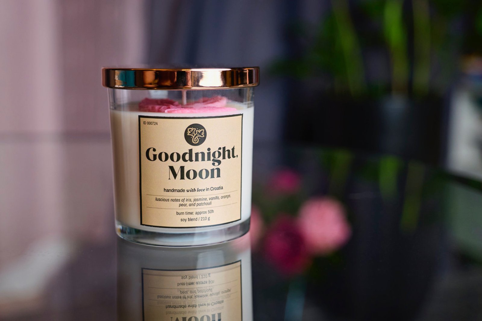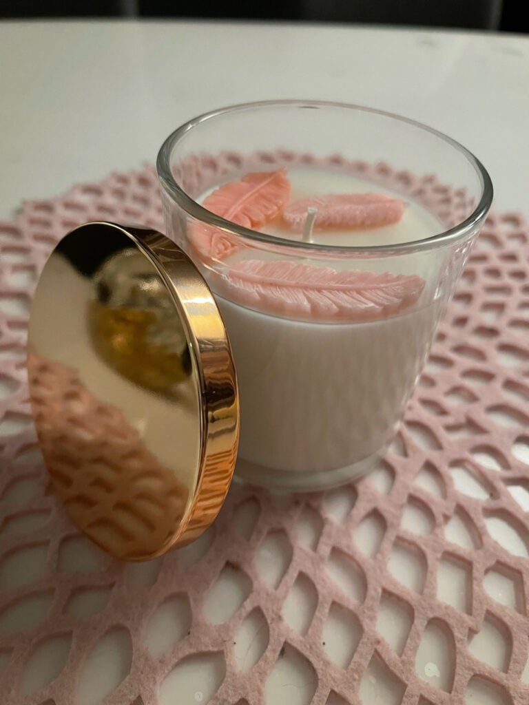 Svijeća u čaši “Life is beautiful” s ružičastim detaljima, inspirirana je mirisom poznatog parfema.